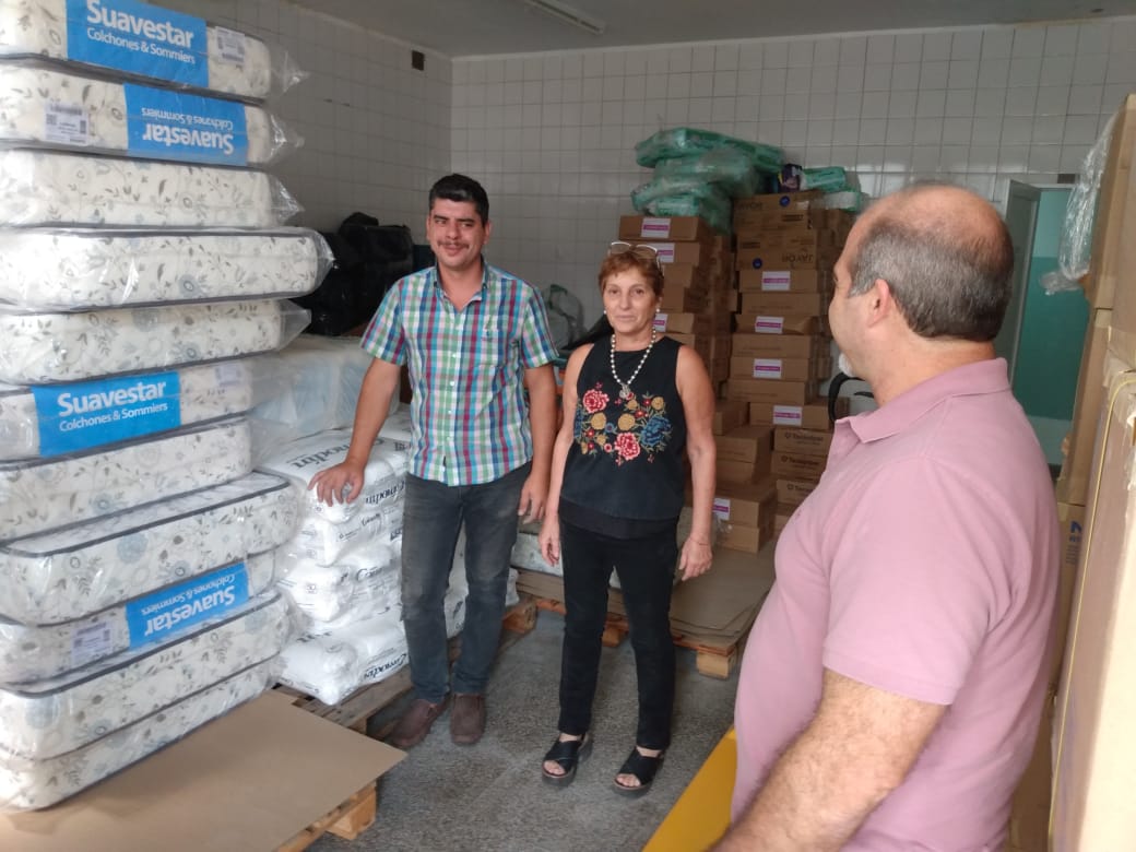 En la tarde de hoy los integrantes del comité de contingencia de la Municipalidad de Tres Arroyos, la licenciada Vanesa Borda, la doctora Claudia Cittadino, el doctor Gabriel Guerra y el licenciado Diego Rodríguez, Director Administrativo recibieron en el Centro Municipal de Salud la donación de colchones por parte de Juan Montesinos propietario de la firma local Montesino Muebles.